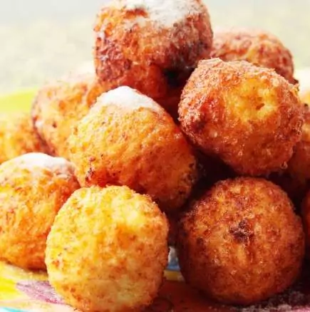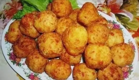 С набрашнени ръце се оформят топчета колкото орех и се пускат в горещата мазнина.