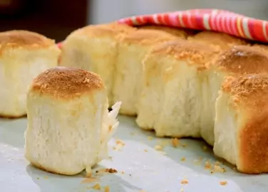 Добавете сиренето и омесете леко с ръка. Оформете леко парцаливи топчета и подредете едно до друго в подмазана с масло тава и оставете да втасат.