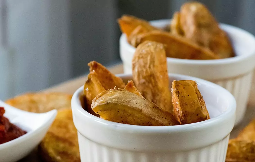Нарежете ги на лодчици и ги изсипете в дълбока купа. Поръсете ги с розмарин, магданоз, сол, черен пипер и каквито още подправки желаете.