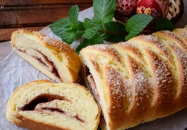 Обичате козунакът да има пълнеж? Предлагаме ви една невероятно апетитна рецепта - козуначето руло с шипков мармалад (може да изберете друг по ваш избор). Направете вашата великденска трапеза богата и красива с този козунак!