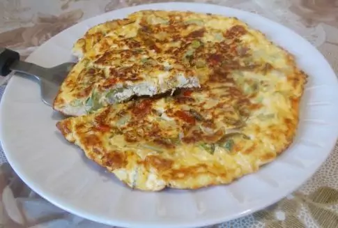 Разбърква се на каша, която се излива в тавичка, намазана с олио с размер 24 см. Може и върху хартия за печене. Слага се в загрята на 180 градуса фурна и печем до зачервяване или до готовност.