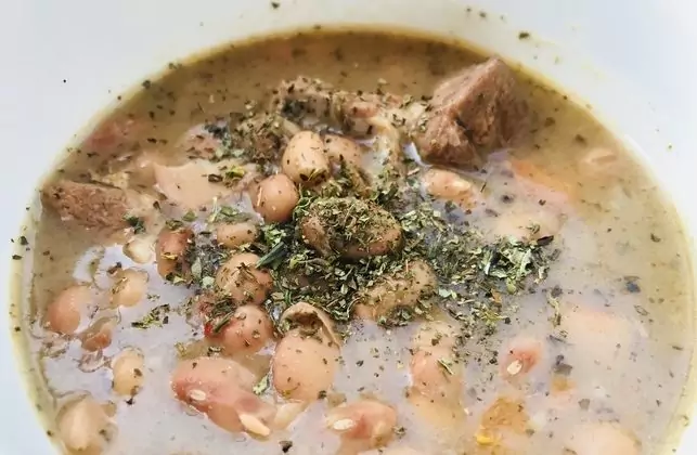 Фасулът се вари десетина минути в тенджера под налягане. След това в същия съд се запържва месото, добавя се лук и се поръсва с брашното.
