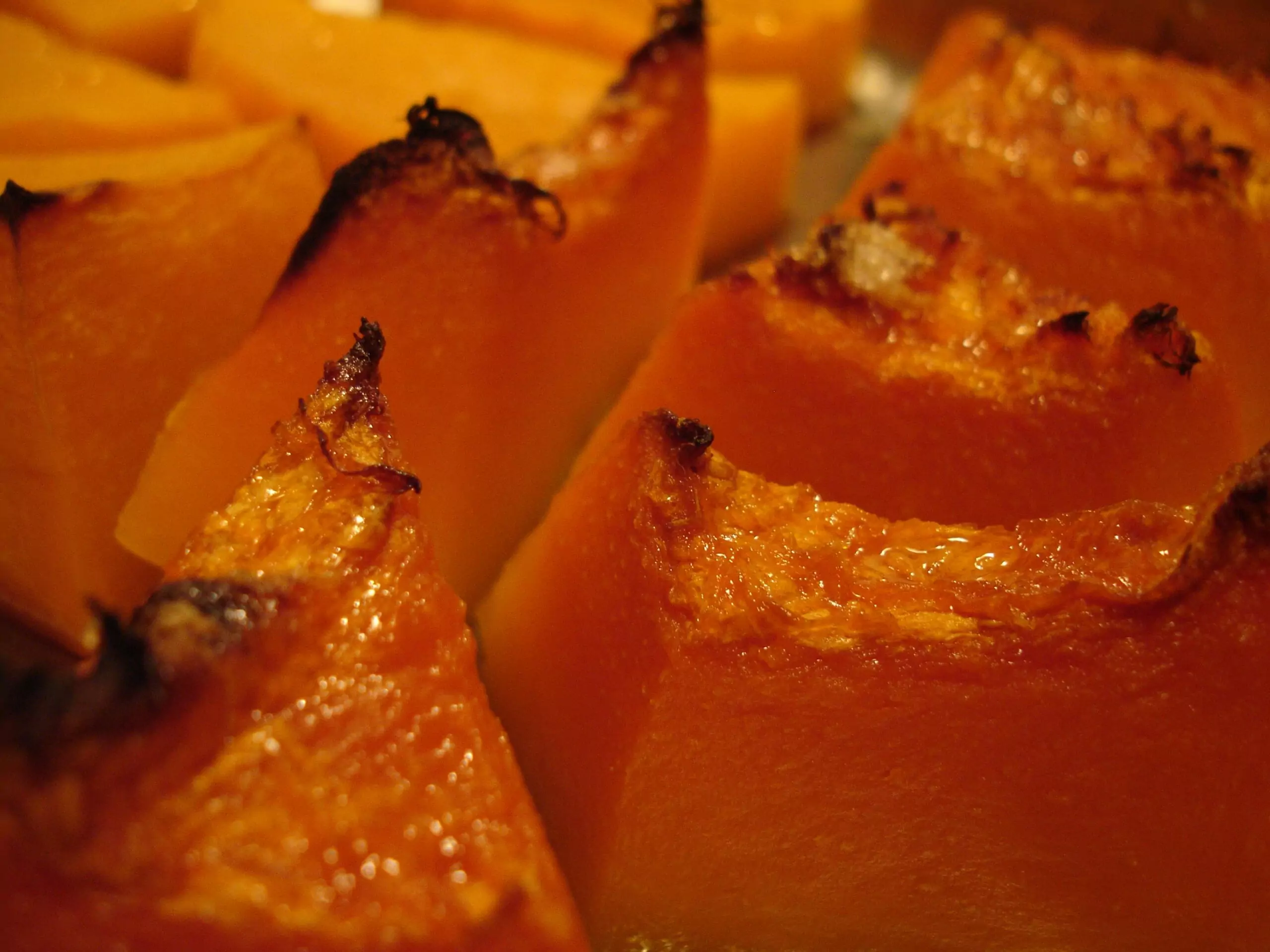 Нарязвате тиквата на парчета, поставяте нарязаните парчета тиква в тава, добавяте захарта и рома и разбърквате добре.