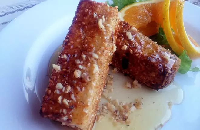 Печено сирене с мед и орехи