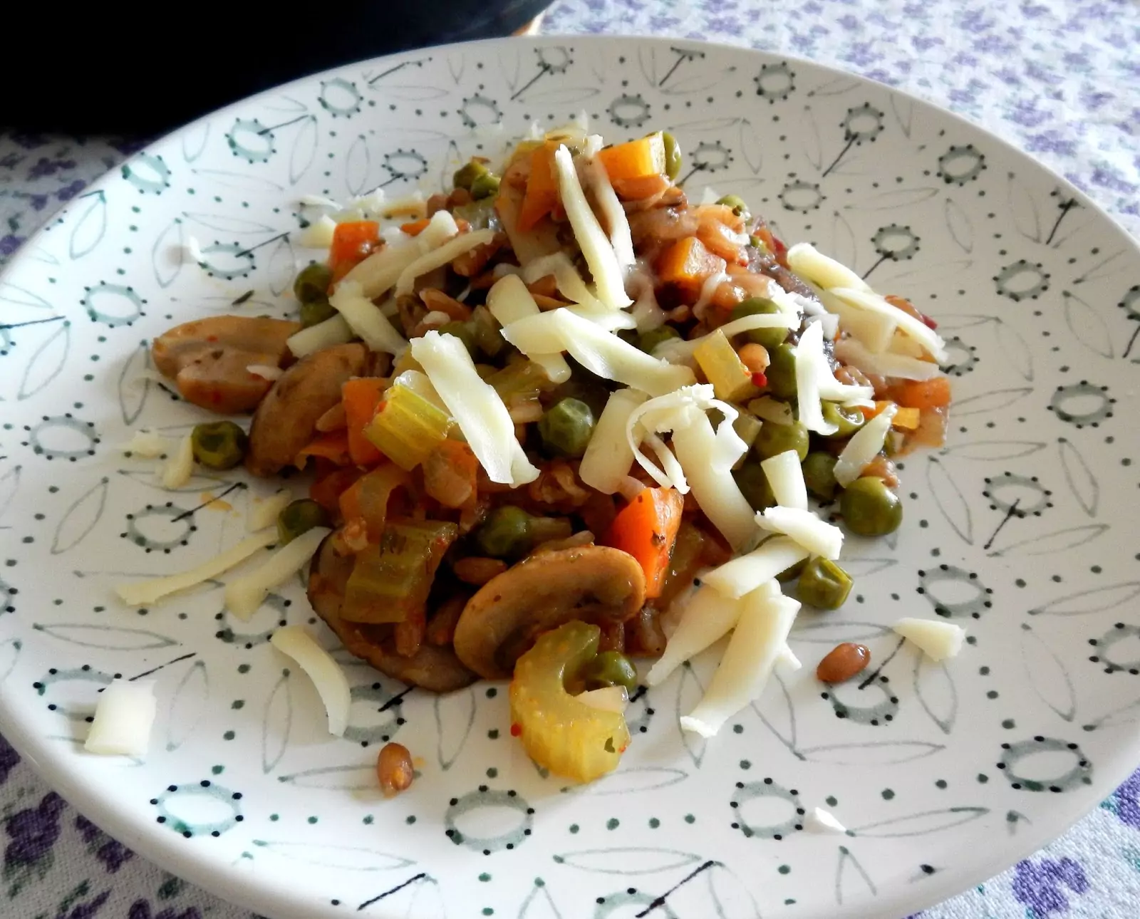 Нарежете гъбите и лука на филийки, морковите – на кръгчета, целината – на кубчета. Намажете с олио дълбока тавичка и ги наредете на пластове, като започнете с лука. На места слагайте от счукания чесън, черния пипер и магданоза.