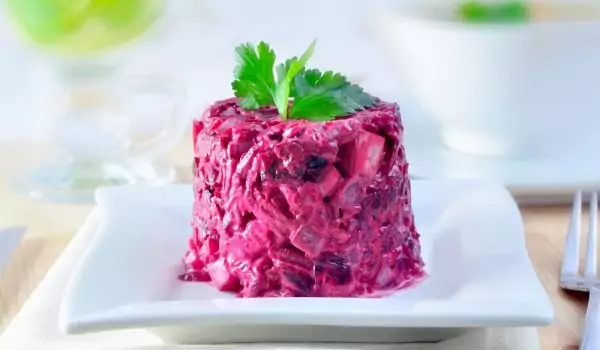 Предлагаме ви една много питателна и вкусна салата с майонеза и червено цвекло. Много бързо се приготвя.-