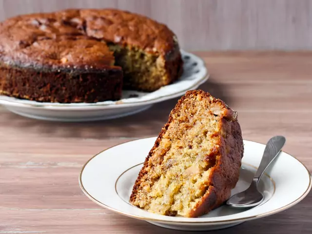 Сладкишът се пече в загрята умерена фурна до порозовяване. Вече готов се наръсва с пудра захар.