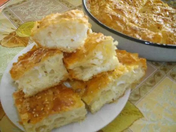 Много бързо и лесно се приготвя тази оригинална баница. Става много пухкава, мека и вкусна.-