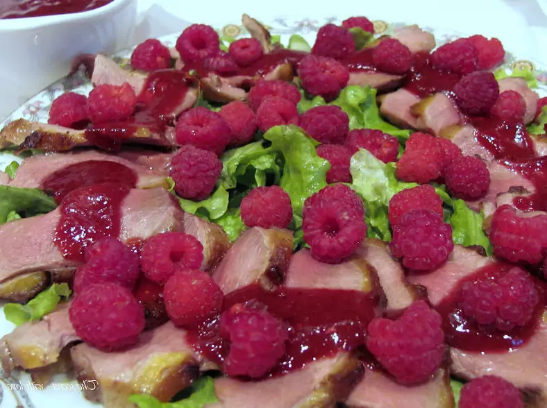 Запечете патешките гърди. Оставете ги да си починат и ги нарежете на тънки филийки.