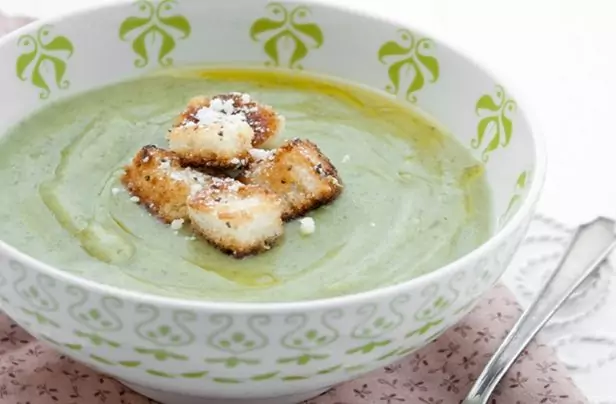 Поръсете парченца лук, краставичка и няколко капки зехтин. Тази супа може да се сервира с няколко варени и белени скариди.
