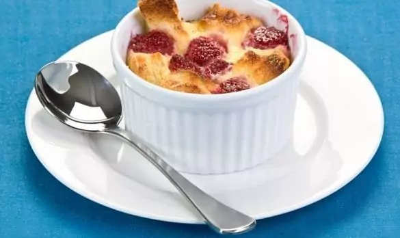 Предлагаме ви една стахотна идея за вкусен десерт с малини. Опитайте този хлебен пудинг с малини. Той се приготвя много лесно и бързо.