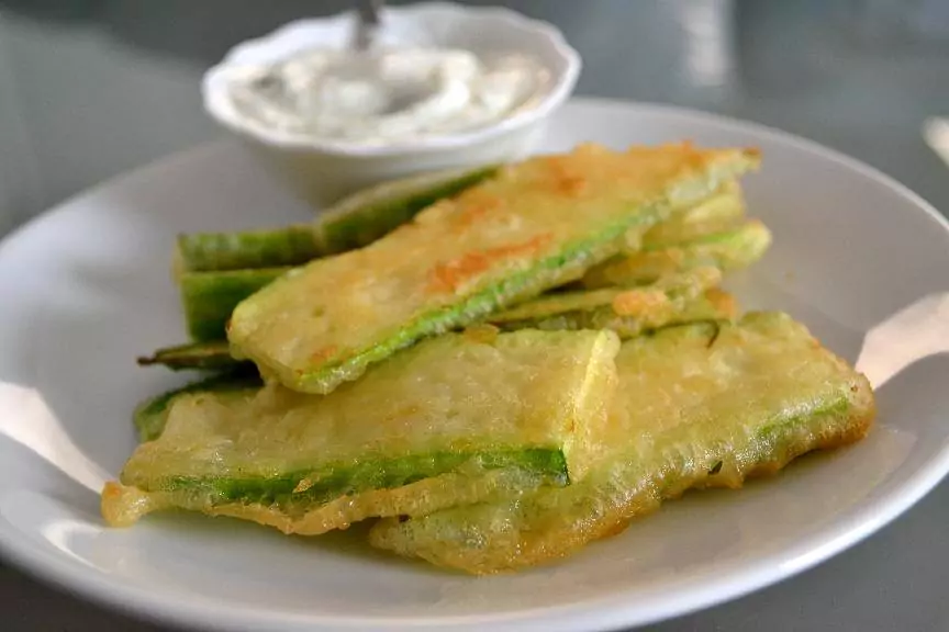 Котлонът се включва на най-силната степен, върху него се поставя тиган с незалепващо покритие и в него се изсипва мазнина да покрие дъното. На вилица се набожда лентичка тиквичка, потапя се в сместа, изважда се и се поставя в мазнината.