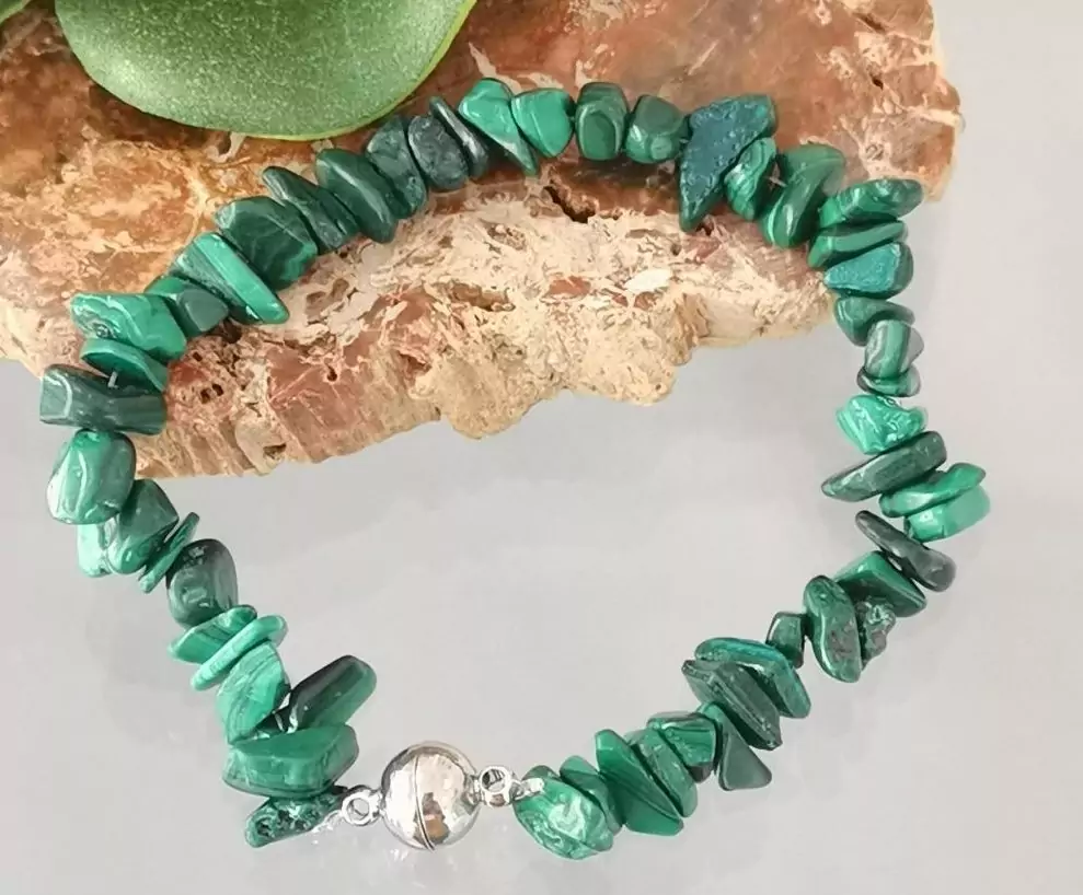 Малахитови обеци и гривни придават тежест на дамата. Този камък е мощно оръжие на любовната магия. Но в същото време той изисква от своята собственичка. Превръщайки я във „фатална“ жена, малахитът иска от нея пълно самоотричане.