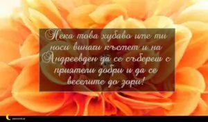 ноември 10, 2020 Андреевден Пожелание за Андреевден 9 за 30 януари 2026 Нека това хубаво име ти носи винаги късмет и на Андреевден да се събереш с приятели добри и да се веселите до зори!