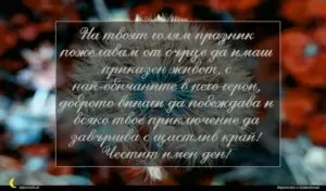 На твоят голям празник пожелавам от сърце да имаш приказен живот, с най-обичаните в него герои, доброто винаги да побеждава и всяко твое приключение да завършва с щастлив край!
