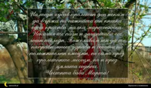 На този хубав пролетен ден искам да вържа на нежната ти китка една красива малка мартеничка. Нека тя те пази и защитава от лоши погледи. Пожелавам ти да те направи много здрава и богата на положителни емоции, не само през пролетните месеци, но и през цялата година.
