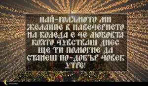 Най-голямото ми желание в навечерието на Коледа е че любовта която чувстваш днес ще ти помогне да станеш по-добър човек утре!