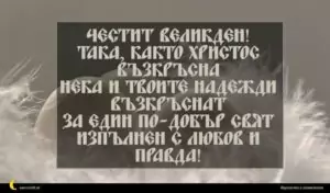 април 1, 2020 Великден Пожелание за Великден 54 за 30 януари 2026 Честит Великден! Така, както Христос възкръсна нека и твоите надежди възкръснат за един по-добър свят изпълнен с любов и правда!