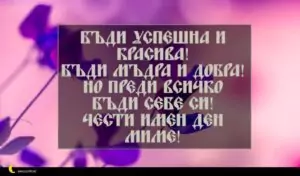 август 14, 2020 Голяма Богородица Пожелание за Голяма Богородица 4 за 30 януари 2026 Бъди успешна и красива! Бъди мъдра и добра! Но преди всичко бъди себе си! Чести имен ден Миме!