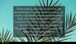 Пожелавам ти най-голямото ти желание да се изпълни най-после, но скоро след това да си наумиш нещо ново, което да ти дава порив за мечти и копнежи, защото човек без мечти е като небе без звезди.