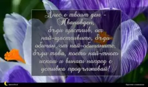 януари 1, 2021 Ивановден Пожелание за Ивановден 17 за 30 януари 2026 Днес е твоят ден – Ивановден, бъди щастлив, от най-щастливите, бъди обичан, от най-обичаните, бъди това, което най-много искаш и винаги напред с усмивка продължавай!