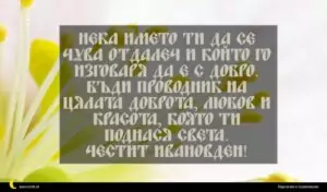 януари 1, 2021 Ивановден Пожелание за Ивановден 24 за 30 януари 2026 Нека името ти да се чува отдалеч и който го изговаря да е с добро. Бъди проводник на цялата доброта, любов и красота, която ти поднася света. Честит Ивановден!