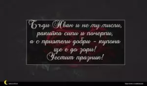 януари 1, 2021 Ивановден Пожелание за Ивановден 51 за 30 януари 2026 Бъди Иван и не му мисли, ракийка сипи и почерпи, а с приятели добри – купона ще е до зори! Честит празник!