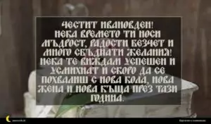 януари 1, 2021 Ивановден Пожелание за Ивановден 6 за 30 януари 2026 Честит Ивановден! Нека времето ти носи мъдрост, радости безчет и много сбъднати желания! Нека те виждам успешен и усмихнат и скоро да се похвалиш с нова кола, нова жена и нова къща през тази година.