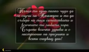 ноември 29, 2020 Игнажден Пожелание за Игнажден 15 за 30 януари 2026 Желая ти едно малко чудо да се случи на Игнажден и то да събере на маса семейството и всичките ти любими хора. Бъдете всички здрави и с настроение на празника и всеки следващ ден!