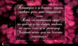 ноември 29, 2020 Игнажден Пожелание за Игнажден 8 за 30 януари 2026 Игнажден е и всичко, което правим днес има магическа сила. Нека си пожелаем един по-добър и по-богат живот, не само сега, а и занапред. Честит имен ден на всички именници!