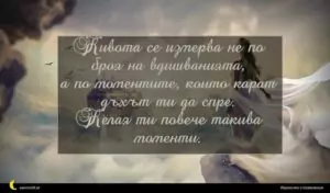 февруари 8, 2020 Имен ден на жена Пожелание за имен ден на жени 13 за 29 януари 2026 Живота се измерва не по броя на вдишванията, а по моментите, които карат дъхът ти да спре. Желая ти повече такива моменти.