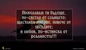 февруари 8, 2020 Имен ден на мъж Пожелание за имен ден на мъж 120 за 29 януари 2026 Пожелавам ти бъдеще, по-светло от слънцето; щастливи мигове, повече от звездите; и любов, по-истинска от реалността!!!