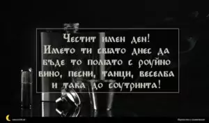 февруари 8, 2020 Имен ден на мъж Пожелание за имен ден на мъж 139 за 29 януари 2026 Честит имен ден! Името ти свято днес да бъде то полято с руйно вино, песни, танци, веселба и така до сутринта!