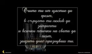 февруари 8, 2020 Имен ден на мъж Пожелание за имен ден на мъж 143 за 29 януари 2026 Очите ти от щастие да греят, в сърцето ти любов да затрепти и всички птички на света да пеят, защото днес празнуваш ти.