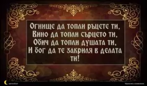 февруари 8, 2020 Имен ден на мъж Пожелание за имен ден на мъж 81 за 29 януари 2026 Огнище да топли ръцете ти, Вино да топли сърцето ти, Обич да топли душата ти, И бог да те закриля в делата ти!