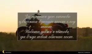 февруари 8, 2020 Имен ден на мъж Пожелание за имен ден на мъж 93 за 29 януари 2026 За имения ден отново цветята вдигат тост след тост. Небето даже е готово да бъде твой обичан гост.