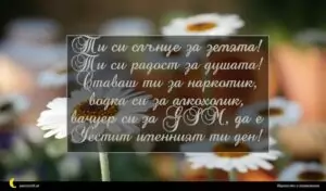 февруари 3, 2020 Имен ден Пожелание за Имен Ден 19 за 29 януари 2026 Ти си слънце за земята! Ти си радост за душата! Ставаш ти за наркотик, водка си за алкохолик, вачуер си за GSM, да е Честит именният ти ден!