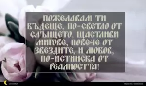 февруари 3, 2020 Имен ден Пожелание за Имен Ден 35 за 29 януари 2026 Пожелавам ти бъдеще, по-светло от слънцето, щастливи мигове, повече от звездите, и любов, по-истинска от реалността!