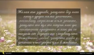 Желая ти здраве, защото без него нищо друго няма значение, несекващ стремеж към знание, защото то ще те научи как да постигнеш предното и как да се пазиш от бедите на следващото пожелание любов, защото това е достатъчно добра цел в живота.