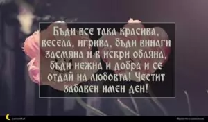 февруари 3, 2020 Имен ден Пожелание за Имен Ден 67 за 29 януари 2026 Бъди все така красива, весела, игрива, бъди винаги засмяна и в искри обляна, бъди нежна и добра и се отдай на любовта! Честит забавен имен ден!