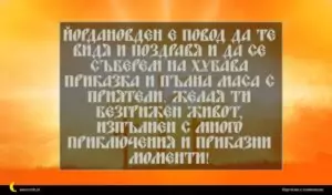 Йордановден е повод да те видя и поздравя и да се съберем на хубава приказка и пълна маса с приятели. Желая ти безгрижен живот, изпълнен с много приключения и приказни моменти!