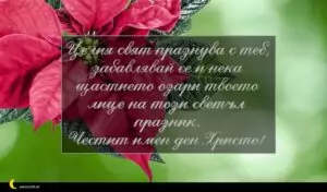 ноември 29, 2020 Коледа (имен ден) Пожелание за Коледа (имен ден) 3 за 30 януари 2026 Целия свят празнува с теб, забавлявай се и нека щастието озари твоето лице на този светъл празник. Честит имен ден Христо!