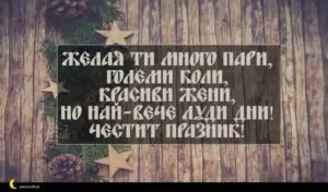 ноември 29, 2020 Коледа (имен ден) Пожелание за Коледа (имен ден) 31 за 30 януари 2026 Желая ти много пари, големи коли, красиви жени, но най-вече луди дни! Честит празник!