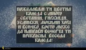 ноември 29, 2020 Коледа Пожелание за Коледа 21 за 30 януари 2026 Пожелавам ти цветна Коледа с много светлини, гирлянди, усмивки, любими хора и всичко, което може да направи вечерта ти прекрасна. Весела Коледа!