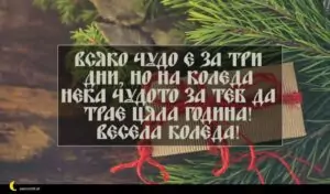 ноември 29, 2020 Коледа Пожелание за Коледа 30 за 30 януари 2026 Всяко чудо е за три дни, но на Коледа нека чудото за теб да трае цяла година! Весела Коледа!