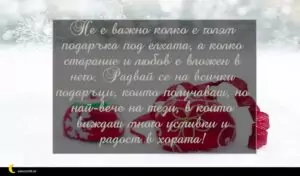 ноември 29, 2020 Коледа Пожелание за Коледа 45 за 30 януари 2026 Не е важно колко е голям подаръка под елхата, а колко старание и любов е вложен в него. Радвай се на всички подаръци, които получаваш, но най-вече на тези, в които виждаш много усмивки и радост в хората!