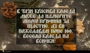ноември 29, 2020 Коледа Пожелание за Коледа 51 за 30 януари 2026 В тази красива Коледа може да намерите много причини за щастие. Аз ви пожелавам поне 100. Весела Коледа на всички!