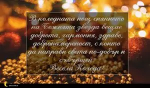 ноември 29, 2020 Коледа Пожелание за Коледа 6 за 30 януари 2026 В коледната нощ сиянието на Божията звезда вещае доброта, хармония, здраве, добронамереност, с които да направи света по-добър и съвършен. Весела Коледа!