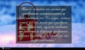 ноември 29, 2020 Коледа Пожелание за Коледа 61 за 30 януари 2026 Така, както не може да преброиш снежинките и светлините по Коледа, така нека да не мога да преброя успехите ти, щастливите моменти и всички добрини, които ще ти се случват от тук насетне!