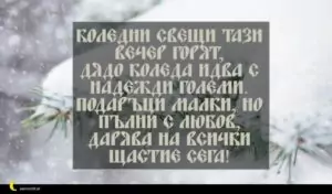 ноември 29, 2020 Коледа Пожелание за Коледа 98 за 30 януари 2026 Коледни свещи тази вечер горят, дядо Коледа идва с надежди големи. Подаръци малки, но пълни с любов, дарява на всички щастие сега!